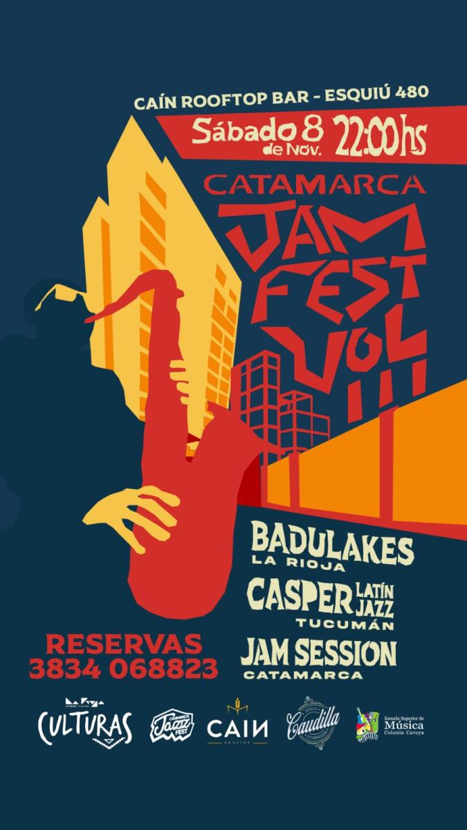 Sábado 8 de noviembre 22:00 🌵🎸Caín Rooftop Bar - Esquiú 480 🍺🌃 Badulakes - La Rioja 🥁 Casper Latin Jazz - Tucumán 🎺Jam Session - Catamarca 🎙