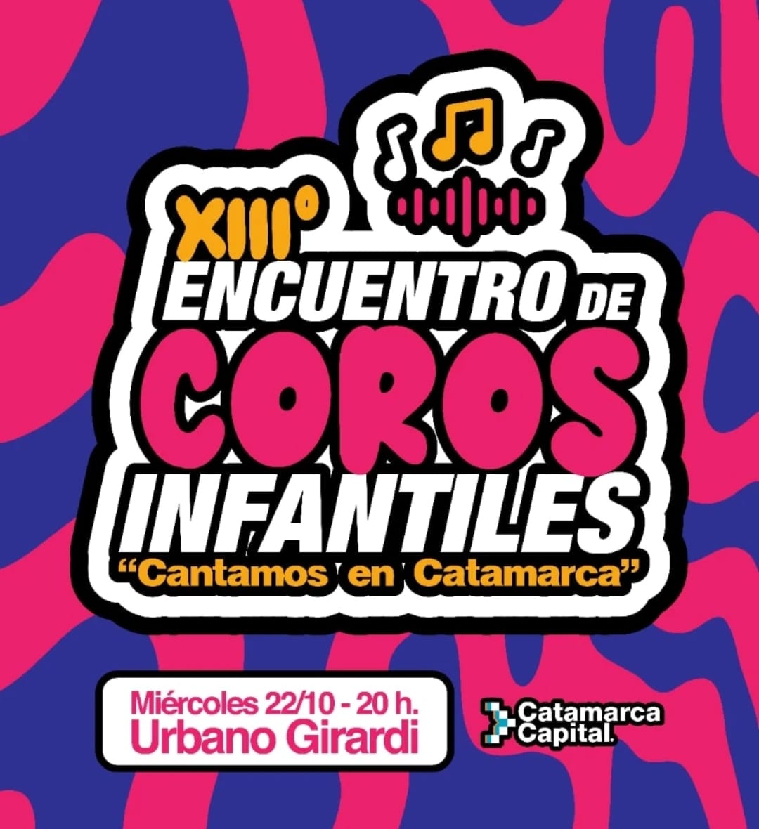 El próximo 22 de octubre, el Teatro Girardi será escenario del XIII Encuentro de Coros de Niños y Jóvenes, en una nueva edición de Cantamos en Catamarca. La actividad reunirá a distintos coros de la provincia y la región, ofreciendo una tarde en la que el canto se convierte en un puente entre escuelas, amigos y familias.Participarán:Coro Municipal de Niños y Niñas de SFVC, dirigido por Cecilia Colla.Coro del Colegio del Carmen y San José, a cargo de Sol Varela.Taller de Canto del Colegio Pía Didoménico, bajo la dirección de Florencia Reinoso.Coro del Taller Infantil del Conservatorio Mario Zambonini, dirigido por Lucas Gómez y Cecilia Colla.